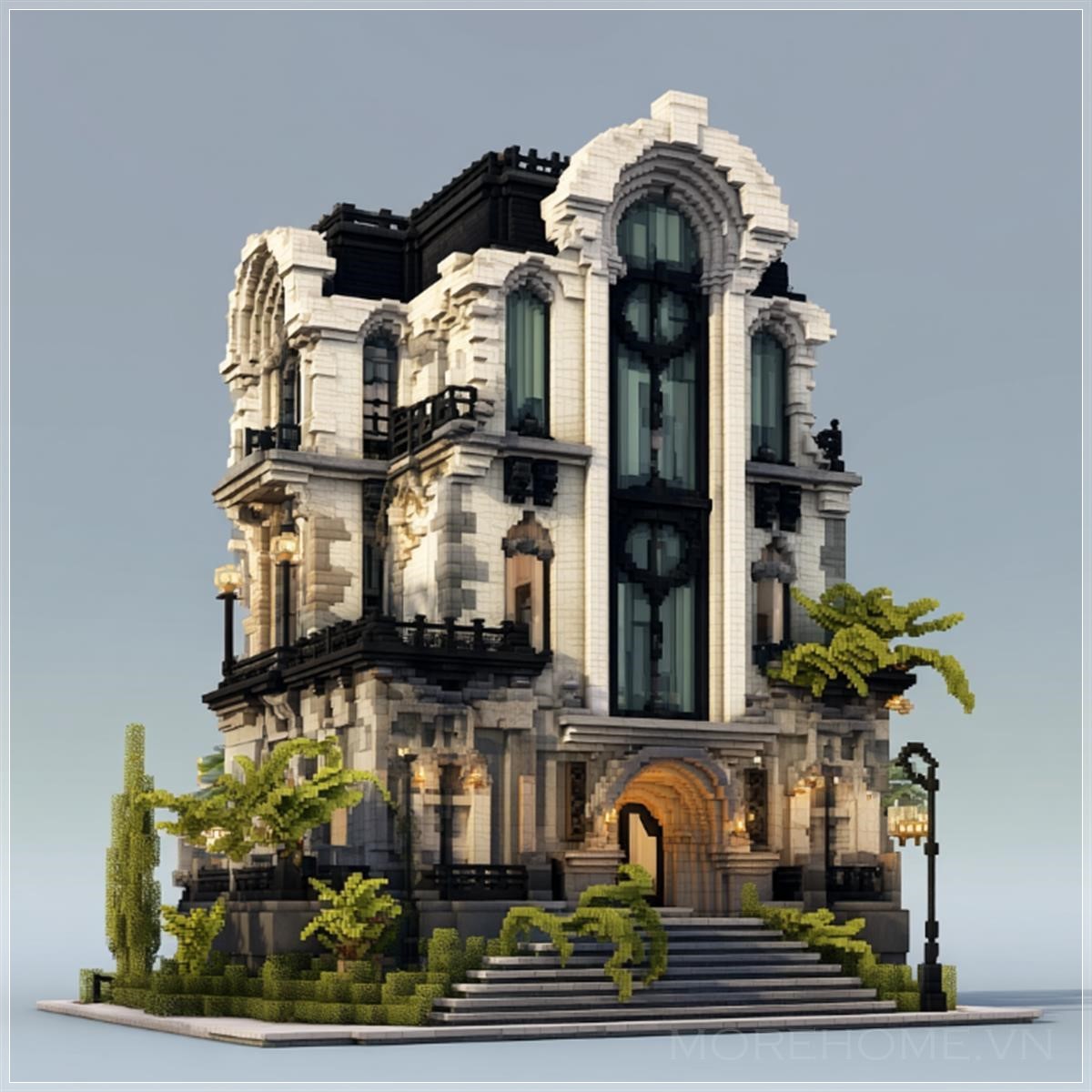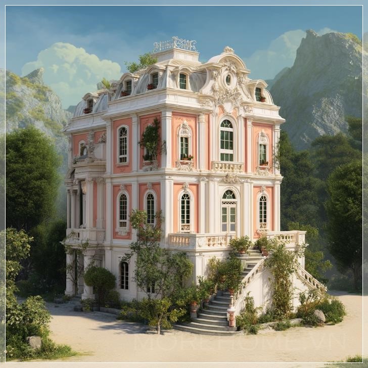 Ngôi nhà phong cách Rococo hiện đại kết hợp giữa vẻ đẹp tân cổ điển và các yếu tố hiện đại. Các chi tiết trang trí tinh xảo, với những hoa văn uốn lượn, đường nét cong mềm mại, và các chi tiết mạ vàng tạo nên một không gian sang trọng và quý phái. Nội thất sử dụng các chất liệu cao cấp như gỗ sồi, da thuộc, và vải nhung, kết hợp với ánh sáng ấm áp từ đèn chùm pha lê và đèn tường cổ điển. Màu sắc chủ đạo là vàng kim, trắng ngà, cùng các sắc màu pastel nhẹ nhàng, tạo nên sự tinh tế và trang nhã. Không gian rộng rãi, với các phòng khách và phòng ngủ đều được trang trí công phu, mang lại cảm giác lãng mạn và sang trọng cho ngôi nhà.