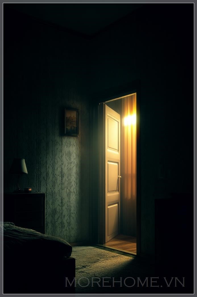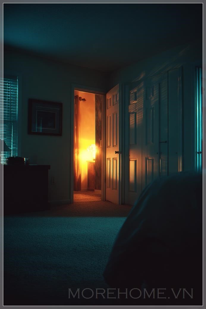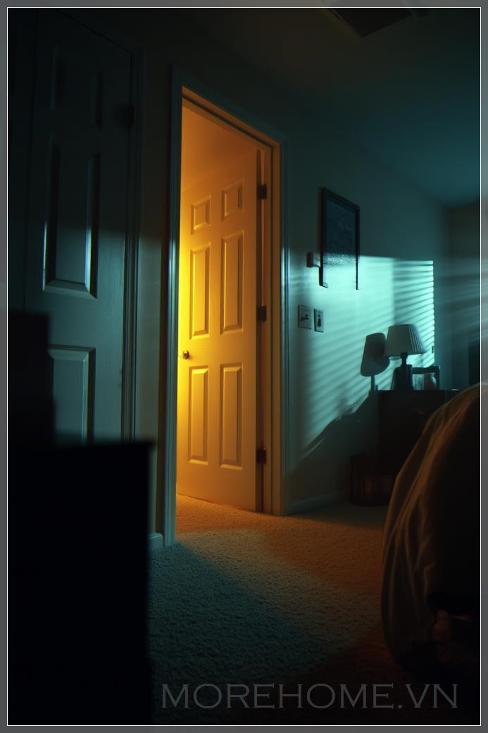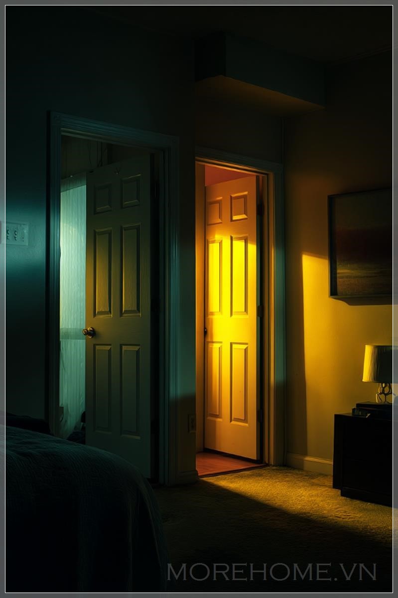 Có một điều gì đó kỳ lạ về những cánh cửa phòng ngủ hé mở vào lúc nửa đêm. Đứng ở hành lang tối tăm, tôi nhìn thấy ánh sáng vàng yếu ớt tràn ra từ khe cửa như thể đang thì thầm những câu chuyện chưa kể. Bức tường phòng ngủ phía trước phản chiếu những mảng sáng tối đan xen, tạo nên một bối cảnh vừa quen thuộc vừa xa lạ.