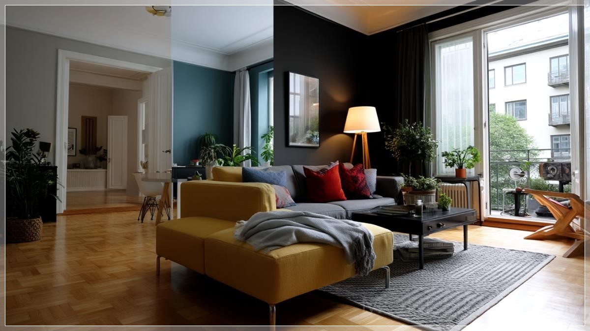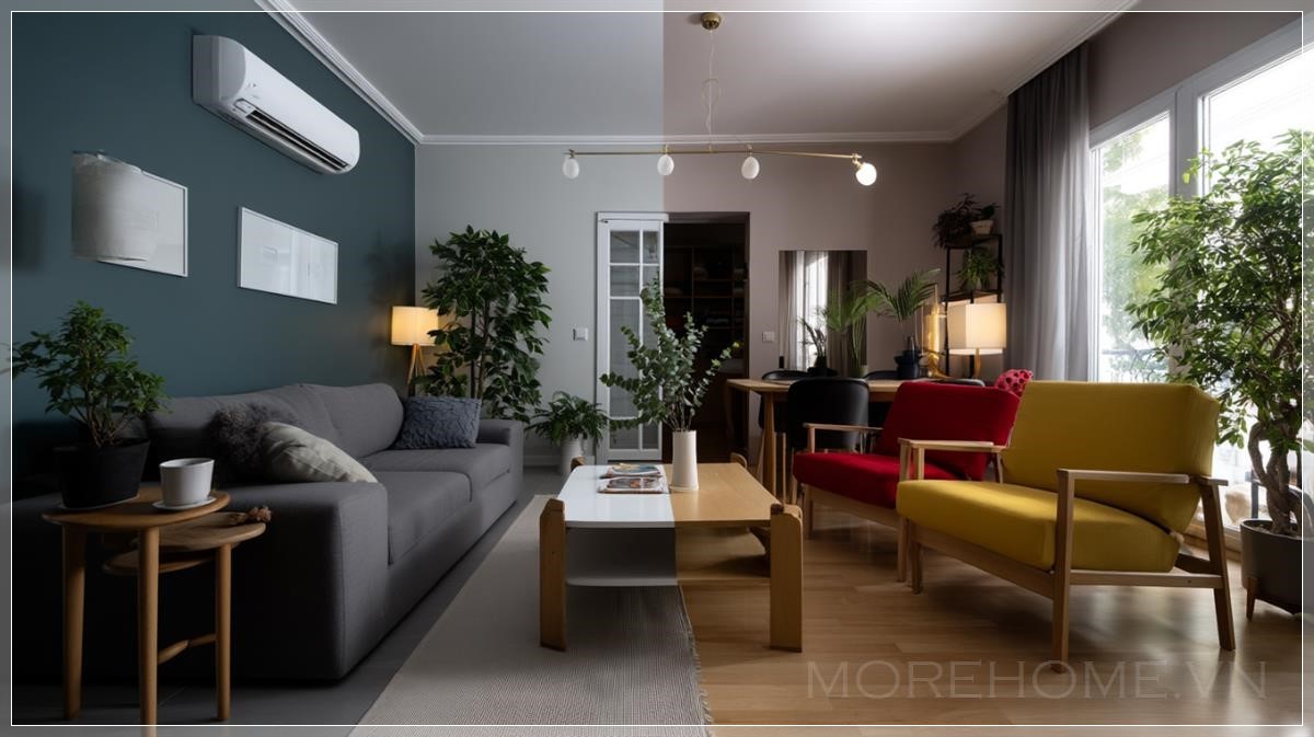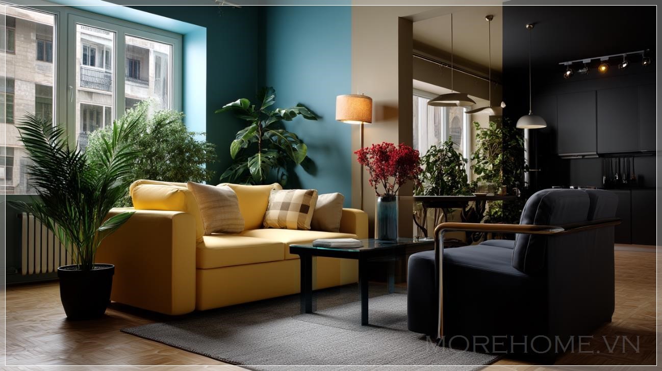 Trong xu hướng design hiện đại, việc sử dụng split color palette như thế này không chỉ là một lựa chọn thẩm mỹ táo bạo mà còn phản ánh sự tinh tế trong cách tiếp cận không gian sống. Nó chứng minh rằng ngay cả trong một căn hộ nhỏ, chúng ta vẫn có thể tạo ra những trải nghiệm thị giác phong phú và đa dạng, miễn là có sự hiểu biết sâu sắc về màu sắc và cách chúng tương tác với nhau.