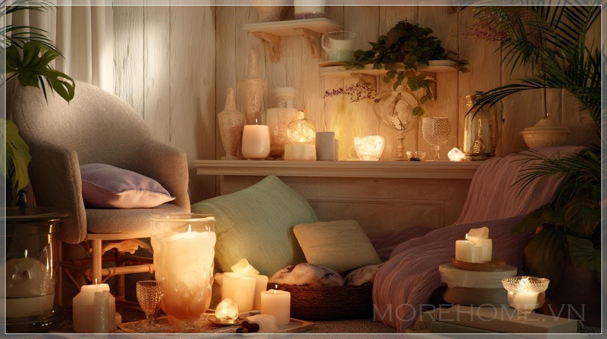 Ánh sáng cũng là một yếu tố không thể thiếu để hoàn thiện không gian ấm cúng quanh bàn. Ánh sáng vàng ấm áp từ đèn bàn hoặc đèn treo sẽ làm mềm không gian, tạo nên một bầu không khí thư giãn và dễ chịu. Hãy thử sử dụng ánh sáng dịu nhẹ để làm nổi bật các chi tiết trên bàn, như một chiếc bình hoa tươi hay những cuốn sách yêu thích, giúp không gian trở nên gần gũi và đầy ấm cúng.