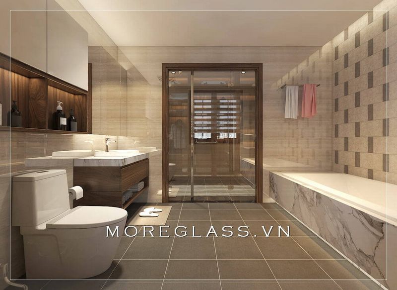 Vách tắm kính cường lực giúp mở rộng và làm thoáng không gian.