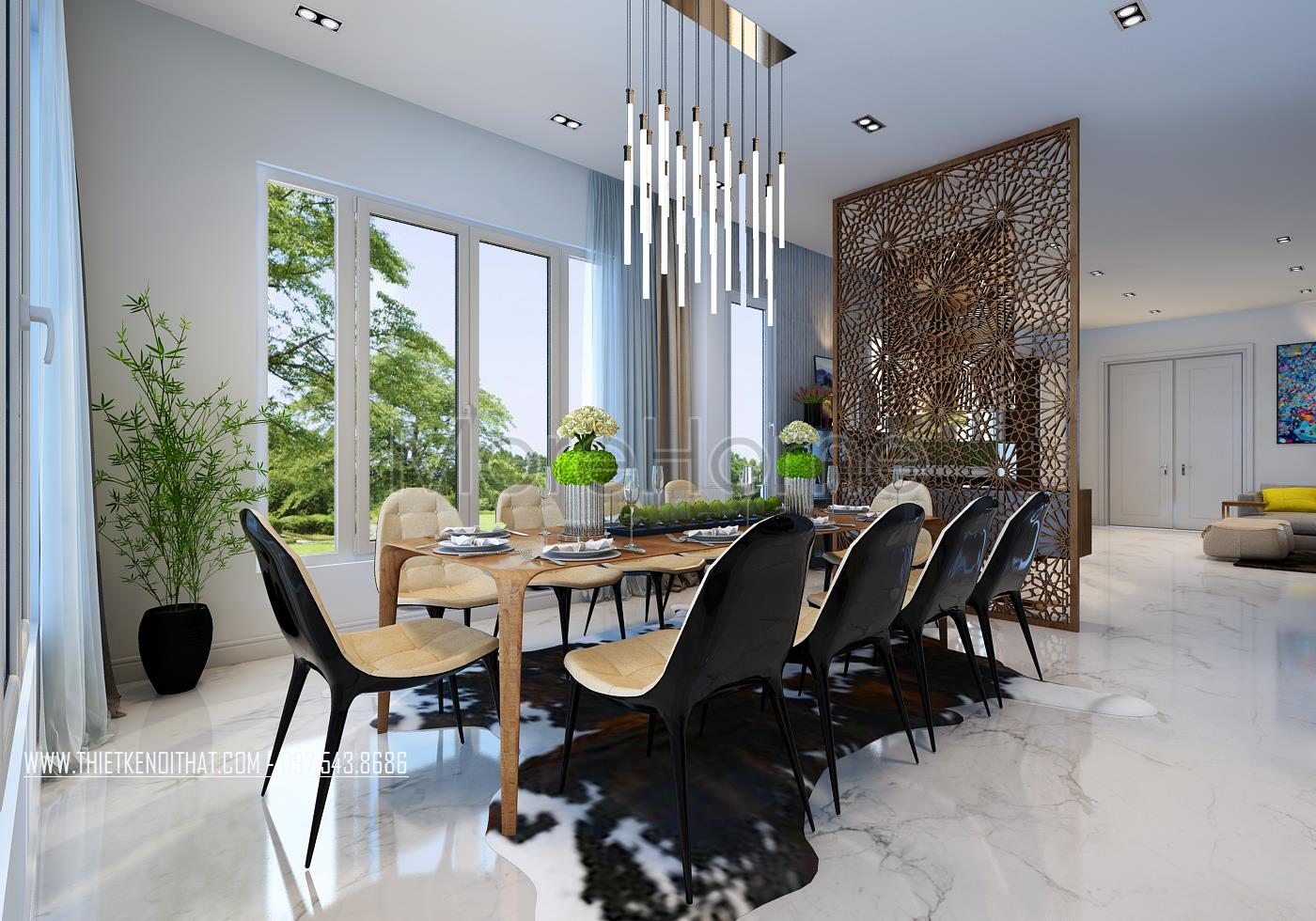 Biệt thự hiện đại sang trọng hiện đang theo xu hướng thiết kế với ý tưởng không gian rộng rãi, thoáng đãng. Thông quá việc thi công biệt thự với nhiều ô cửa để đón ánh sáng tự nhiên sẽ giúp giảm thiểu đi những chi tiết nhỏ trong không gian mà vẫn mang đến sự sang trọng cần có. Phòng khách, phòng ăn sẽ không phân chia bằng tường mà thay bằng các vách ngăn hoa, gỗ, thạch cao hiện đại đẹp mắt với chiều cao giảm xuống 1 nửa. Mục đích chính giúp ánh sáng tự nhiên có thể tràn ngập khắp căn nhà, cảm giác không gian rộng rãi và thoáng đãng hơn.